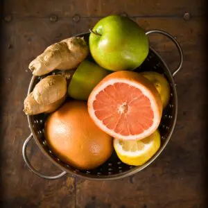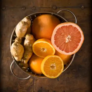 Ginger, lemon, cayenne, garlic, alkaline water, honey
