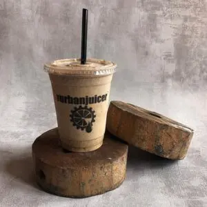 banana, ground coffee beans, almond butter, vanilla whey, coconut milk