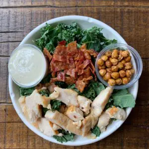 Chopped kale, grilled chicken, crispy chickpeas, Boar's Head bacon, house-made Caesar dressing