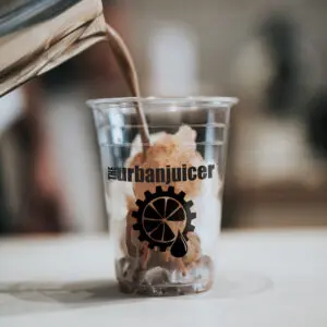 Greek yogurt, coconut water, mango, apple, cucumber, ginger, lemon, spinach, collagen, chia seeds