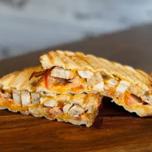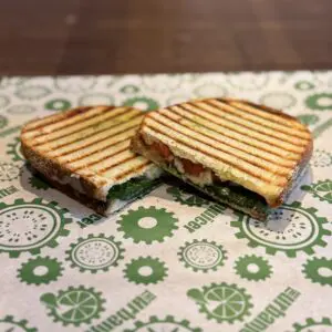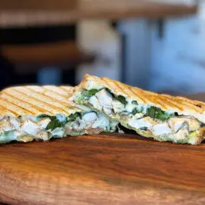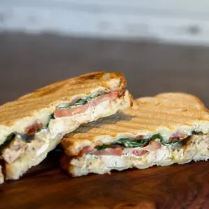 Grilled chicken, Havarti cheese, tomato, spinach, pesto