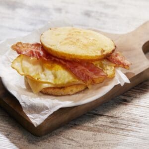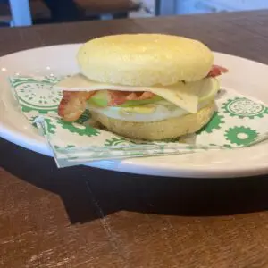 Fried egg, Boar's Head bacon, sliced apple, havarti, honey, english muffin (GF)