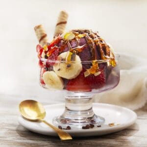strawberries, blueberries, flax seed, coconut shavings and toasted almonds (GF) (V)