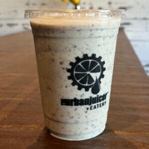 Almond milk, Greek yogurt, banana, peanut butter, cacao nibs, chocolate whey
