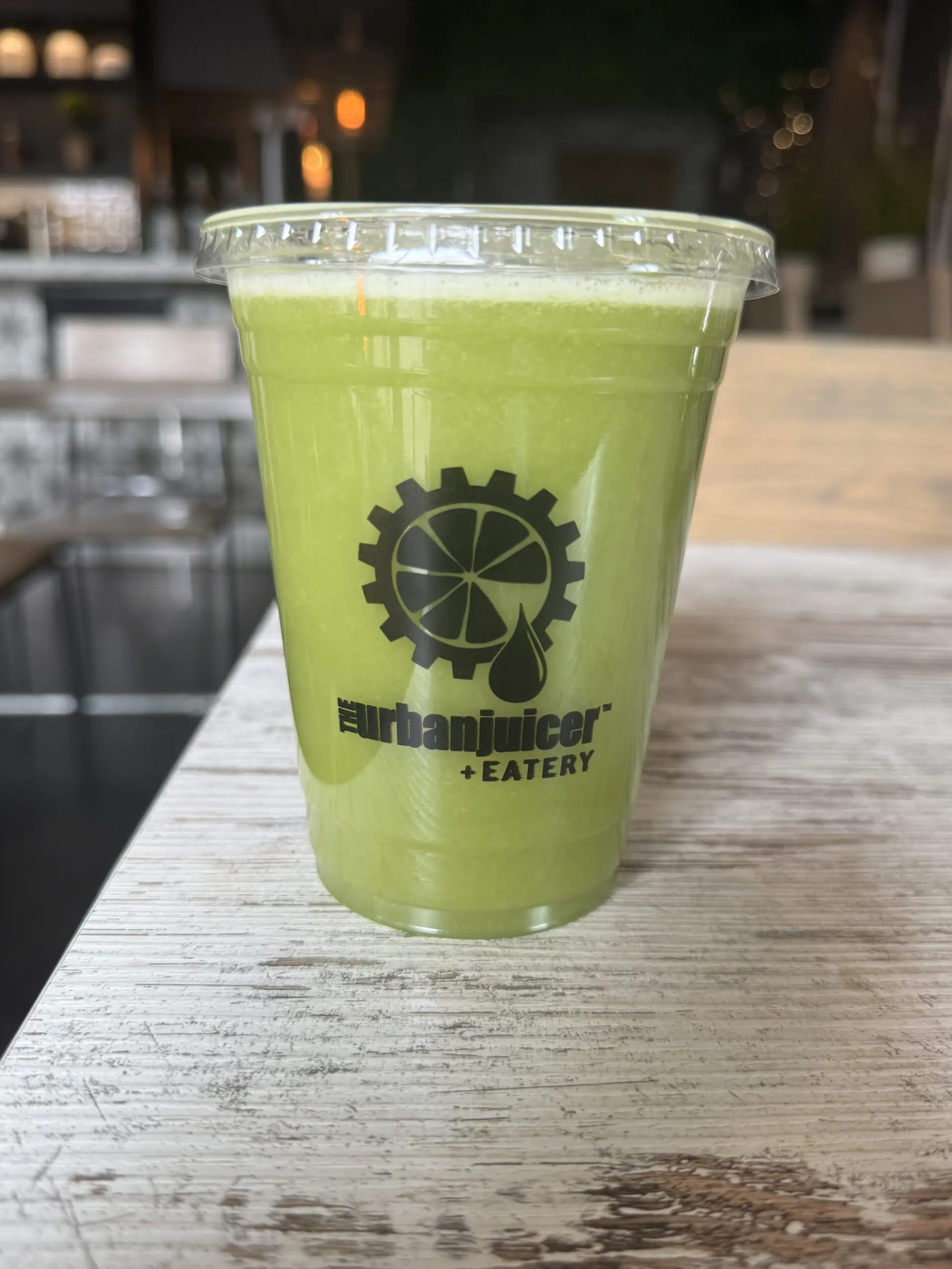 The Well Being cold-pressed juice from The Urban Juicer blends kale, spinach, cucumber, apple, ginger, and lemon to deliver a refreshing boost of vitamins, minerals, and antioxidants that support overall wellness and immune health.