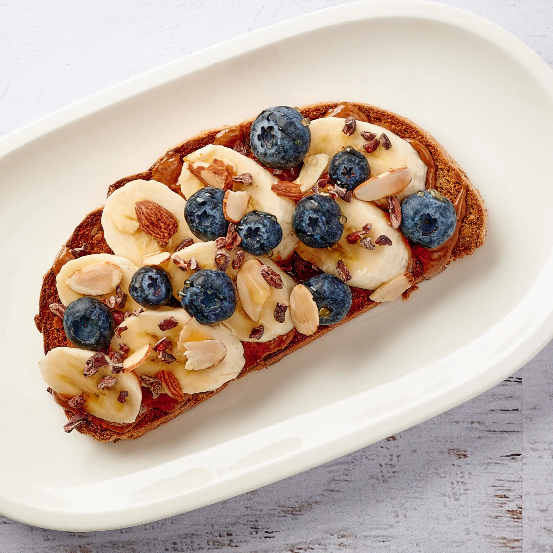 The Almond Butter Toast The Urban Juicer's Almond Butter Toast—featuring almond butter, bananas, honey, toasted almonds, cacao nibs,…